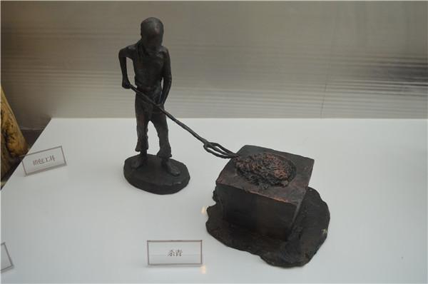 An artwork on display in the Yaan Museum shows a process of making Tibetan dark tea in the traditional way. (Photo: chinadaily.com.cn/Jiang Wanjuan)