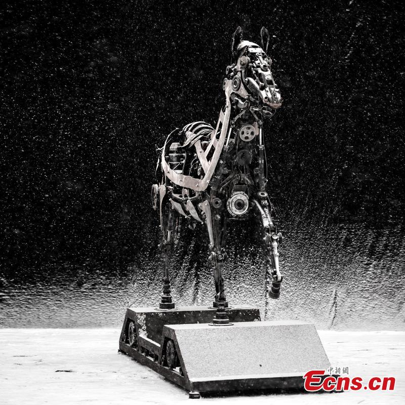 Creations made from old auto parts and construction materials are on display at a studio in Hutubi county, Changji Hui autonomous prefecture, Northwest China’s Xinjiang Uygur autonomous region.