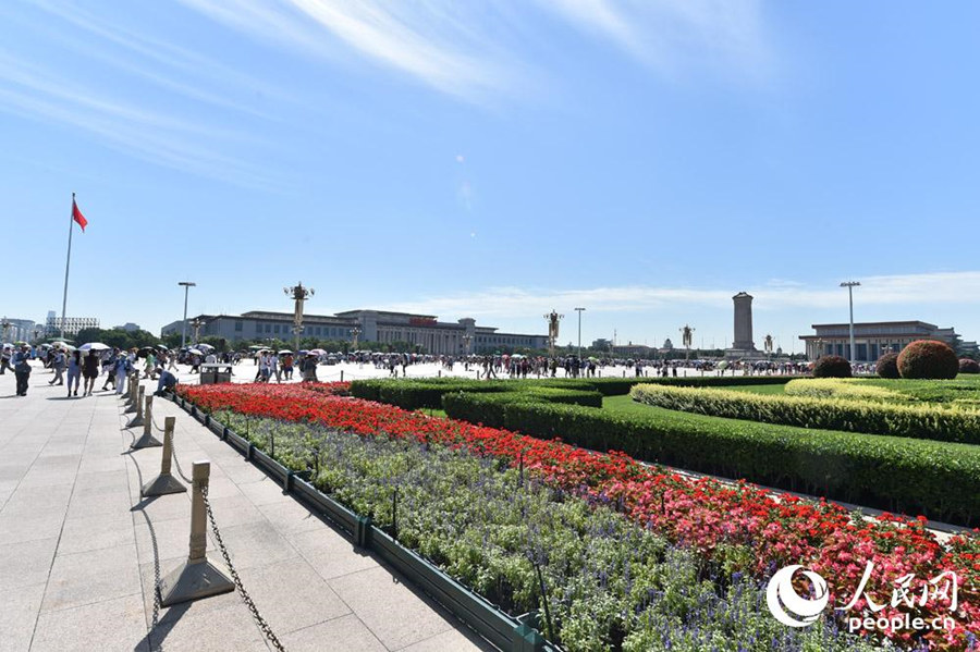 The flowers arranged on the two sides of Tiananmen Square on August 4, 2015. (people.cn/Weng Qifan)