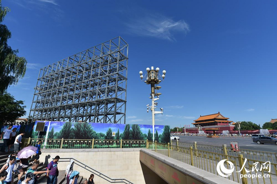 Preparations for the V-Day parade is underway in the Tiananmen Square and the Changan Avenue.
