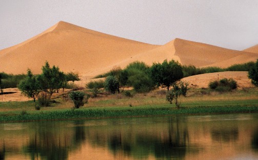 | The oasis in Kubuqi desert in Xinjiang. (Photo/gmw.cn) |