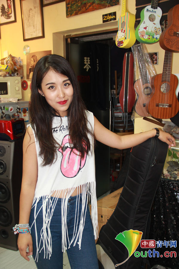 Xiaotong, the head and drummer of the band Miss mix. (youth.cn/Zhao Lin)