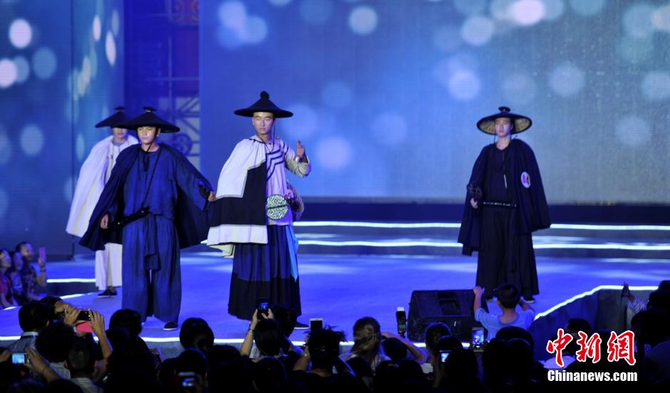 Models show beautiful costumes of the Yi nationality on T stage. (Photo by China News Agency/ Liu Zhongjun)