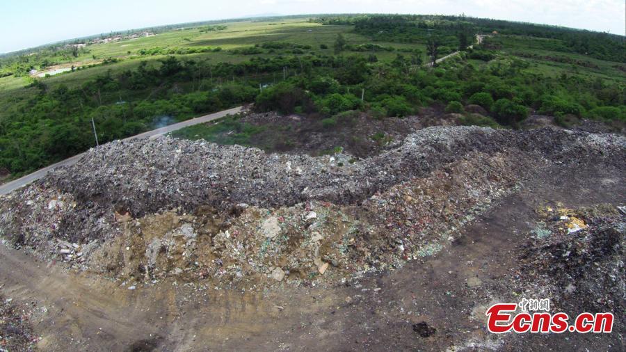 Garbage piles up at a site in Jinshan town of Wenchang city, South China’s Hainan province, Aug 6, 2015. The garbage has been left there for more than 20 years without being processed, rising to meters in height and emitting a terrible smell. Viewed from the air, it looks like a giant scar in a field of green plants. (Photo: China News Service/Wang Xiaobin)