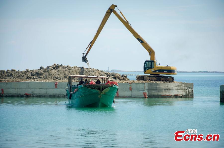 Illegally built structures, including a wharf, are popping up on a stretch of coast in Lingao county, South China’s Hainan province, Aug 6, 2015. A company has reclaimed land from the sea and built structures without acquiring necessary approvals. The company was fined more than two million yuan ($320,000) in 2011 but has since built more facilities, incurring another fine of 2.4 million yuan. (Photo: China News Service/Luo Yunfei)