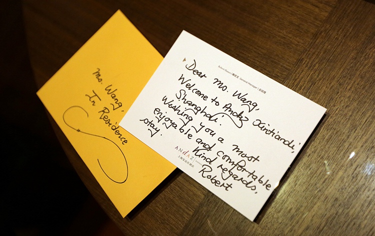 A handwritten welcome letter from general manager Robert Hamper is put on the table.