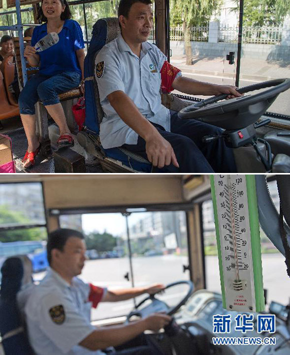 On July 27, driver Chen Lin works in the compartment at 43 degrees Celsius. (Photo from Xinhua)