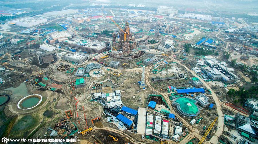 An aerial view of Shanghai Disneyland (Photo from People's Daily Online)