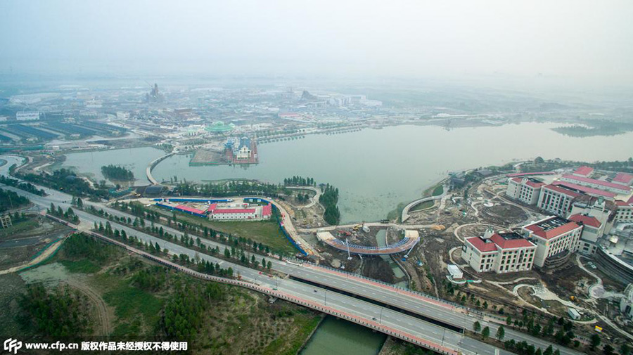 An aerial view of Shanghai Disneyland (Photo from People's Daily Online)
