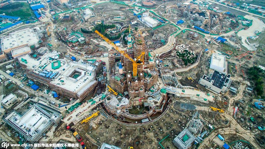 An aerial view of Shanghai Disneyland (Photo from People's Daily Online)