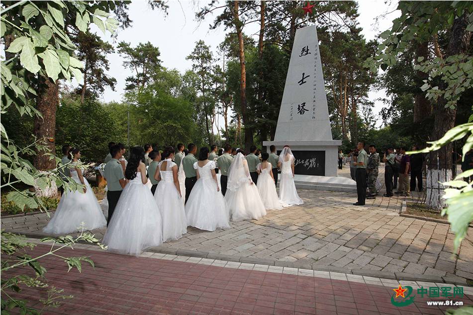 A special group wedding was held in Heihe, northeast China’s Heilongjiang province for 14 military soldiers on Aug. 1, 2015. Most of these soldiers spent their time on the frontier, in the woods, or on naval vessels, so they rarely have the time to keep their lovers company. The group wedding served as a platform for the soldiers' life partners to understand the importance of their jobs and cherish the hard-earned happiness.