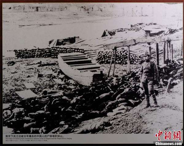 File photos shows the bodies of Chinese people murdered by the Japanese troops at Xiaguan near the Yangtze River, Nanjing.