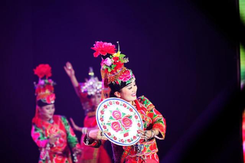 An annual traditional beauty pageant is held during the seventh international Liangshan Yi Torch Festival in Sichuan’s Yi Autonomous Prefecture on Aug. 9, 2015. Women in traditional Yi costumes performed singing and dancing at the event. (CNS/Gao Han)