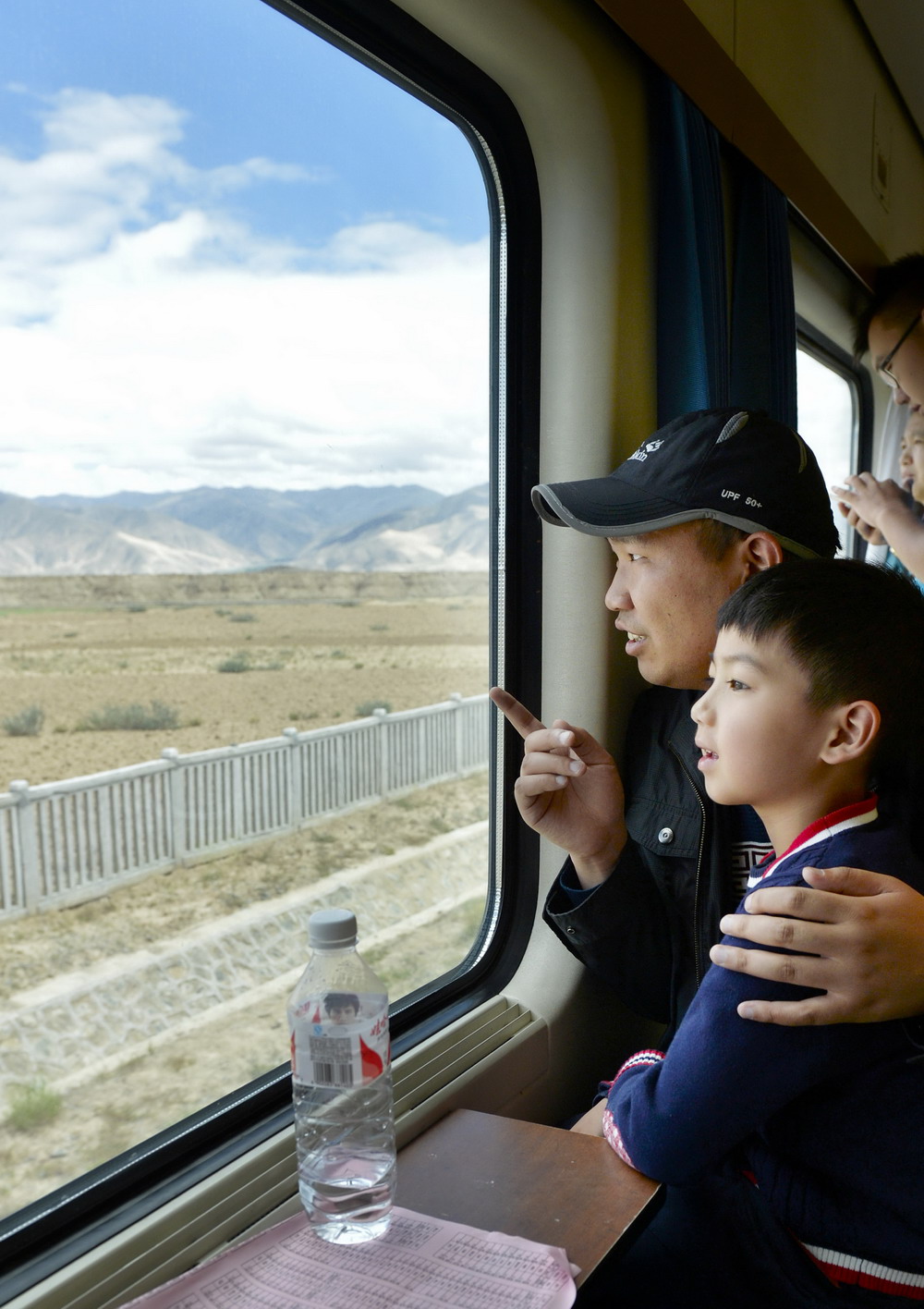 People takes train from Lhasa to Shigatse. (Photo/Xinhua)