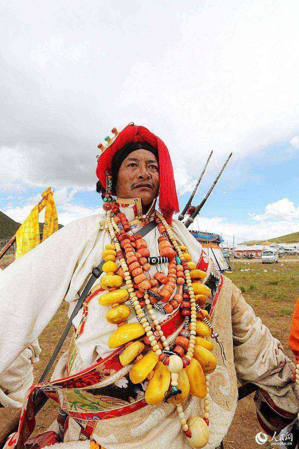 A traditional Tibetan costumes show is held in Zadoi County in northwest China’s Qinghai province on Aug. 7, 2015. Over 140 young men and women wearing Tibetan costumes and precious jewelries participated in the costume performance. (Photo/people.cn)