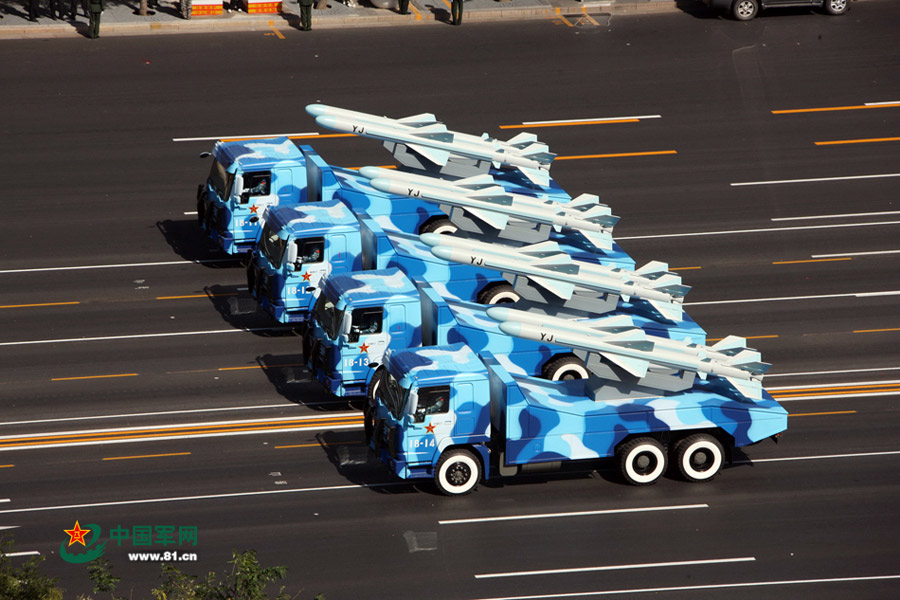 Since the founding of P. R. China in 1949, 14 national day military parades have been held in the Tiananmen Square in Beijing. Weapons and equipment are an important part of the parades. Let’s have a look some photos of missiles of various types displayed in the 2009 National Day Military Parade. (Photo/www.81.cn)