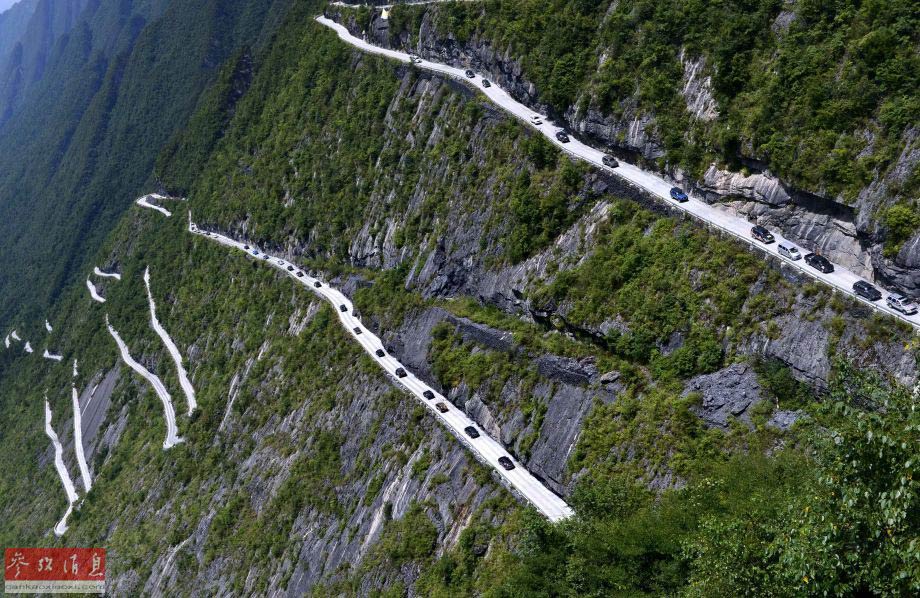 To experience speed and passion, more than 160 jeeps passed through the “Heaven Road” in the mountain area in Enshi, Hubei. The Chegenpo section from Shuanghe village to Muliyuan villigae in Xintang county, Enshi, is a “Heaven Road” built by local villagers on cliffs after arduous efforts. It looks like a jade belt in the mountains.