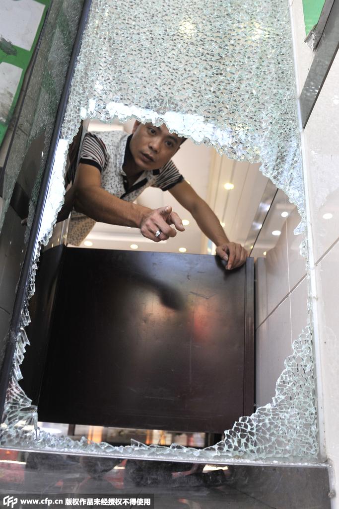A thief broke into a jewelry store and stole jewelries, diamonds, gold, and watches worth more than 1 million yuan in Chengdu, southwest China's Sichuan province on Aug. 9, 2015.