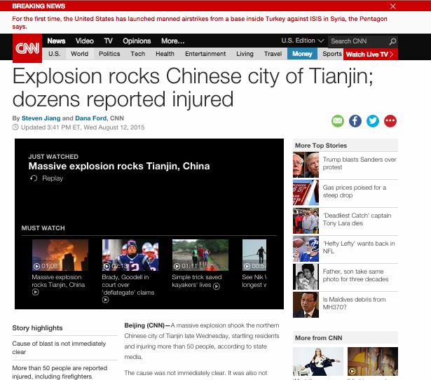 #Tianjin Early today in Tianjin, China, there was a massive explosion that has reportedly killed seven and injured hundreds of people.