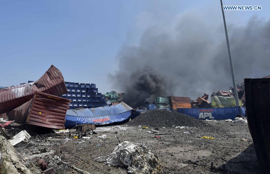 Black smoke billows out from the explosive site in Binhai New Area of Tianjin, north China, Aug. 13, 2015. The death toll has climbed to 44 from two massive blasts that ripped through a warehouse in north China's port city of Tianjin as of Thursday noon, according to rescue headquarters. Twelve firefighters were among the dead. (Xinhua/Yue Yuewei)