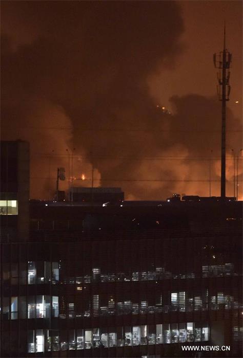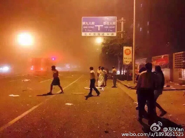 Four places in the explosion site are still on fire. The road to ignition points is still not in service, according to Weibo account of Xinhua News Agency. (People.cn/Yuan Can)
