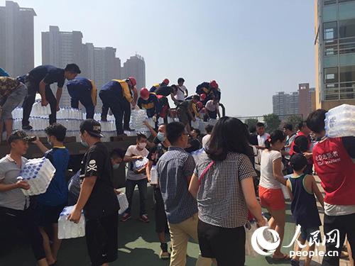 Two massive explosions ripped through a container terminal in northern China’s Tianjin municipality Wednesday night. A local primary school has been transformed into a shelter for the victims. Several volunteers told People’s Daily Online that community assistance has been in place soon after the explosions. Volunteer organizations and volunteers brought food and water to the shelter. Some even drove their cars to the explosion site to help evacuation. (People's Daily Online/Pan Xuhai)
