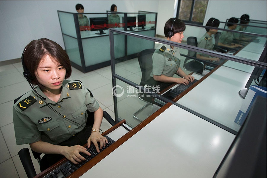 The soldiers answer phone calls. (Zhejiang Online/Tong Xiaolei)
