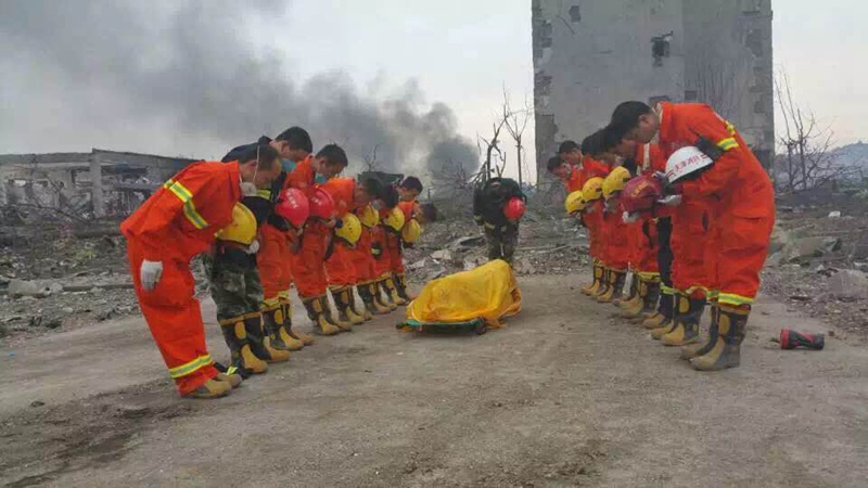 It is reported that the victim is an officer from the firefighting branch of the Tianjin Binhai Development Area. His name is still not confirmed yet.