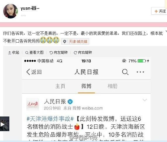 His sister says that she doesn’t know how to tell her mother of Yuan Hai’s death. (Photo from Weibo)