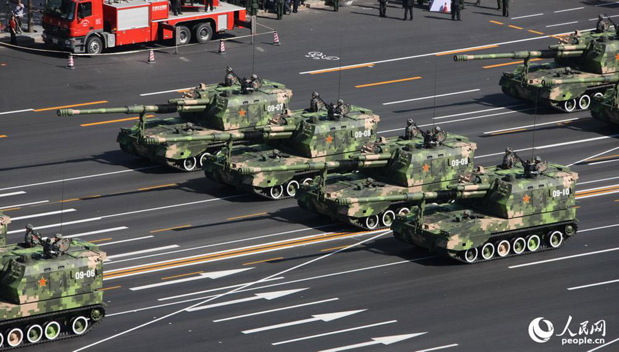Artilleries displayed in the 2009 parade. (Qiao Tianfu/People.cn)