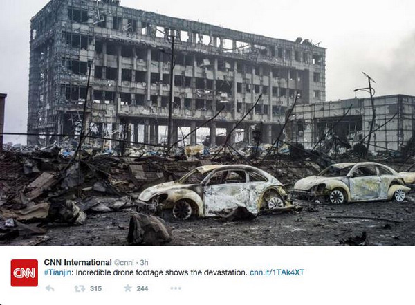 #Tianjin US Social media is full of photos showing the devastation brought on by the Tianjin chemical explosion.