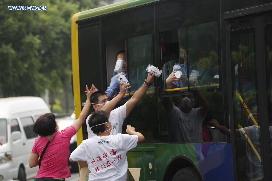 Residents rush to leave after getting an evacuation order near the core area of explosion site in Tianjin, north China, Aug. 15, 2015. All people within 3-km radius are required to evacuate from Tianjin blasts site. (Xinhua/Shen Bohan)