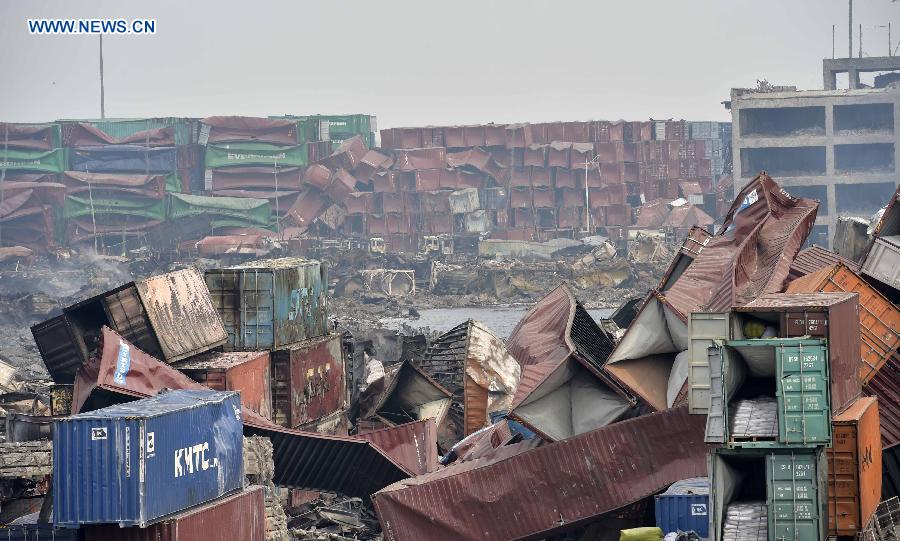 Photo taken on Aug. 17, 2015 shows the warehouse explosion site in Tianjin. Death toll of the massive Tianjin blasts rose to 114 after rescuers found two more bodies in the debris, a municipal publicity official said on Monday. (Xinhua/Yue Yuewei)