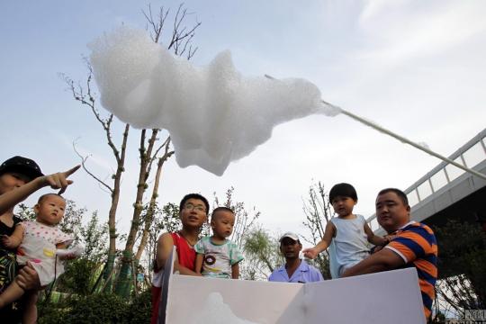 The young man, an exhibition curator, is invited by a company to exhibit this cloud machine and gets paid 10,000 yuan per day. (Photo from Youth) |