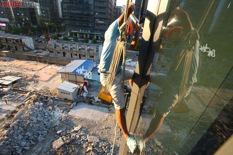 Wei fixes the neon lights. (China.com.cn/Zhang Peijian)