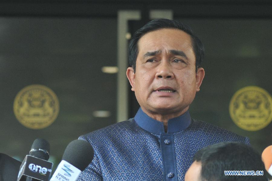 Thai Prime Minister Prayuth Chan-ocha speaks to reporters at the Government House in Bangkok Aug. 18, 2015. Prayuth Chan-ocha on Tuesday promised the authorities would quickly track down those responsible for the central Bangkok bombing, which he described as the country's worst attack ever. (Xinhua/Rachen Sageamsak)