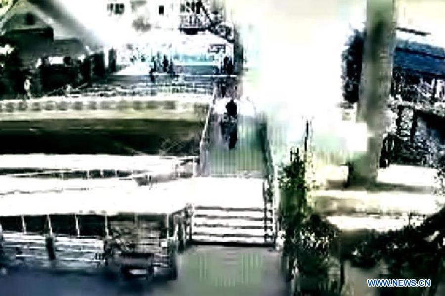 Screenshot taken on Aug. 18, 2015 shows the explosion site at a wharf in Bangkok, Thailand. No casualties were reported.