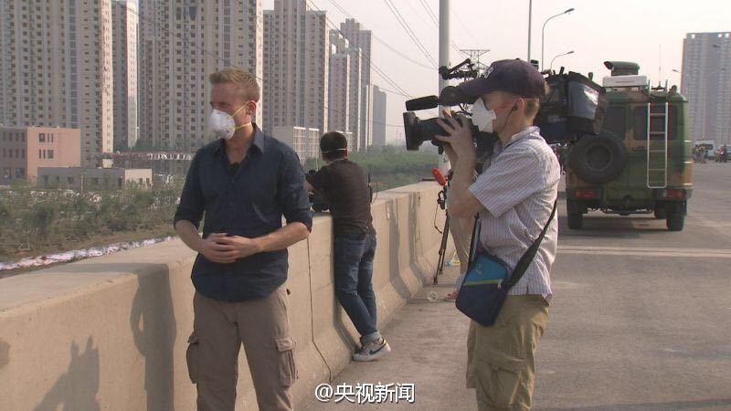 Domestic and foreign media organizations enter core area of Tianjin blasts (2)