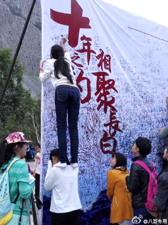 In the story, two characters promised to meet each other 10 years later in Changbai Mountainon, on Aug. 17, 2015. Thousands of fans of the novel headed to the Changbai Mountain on this day.