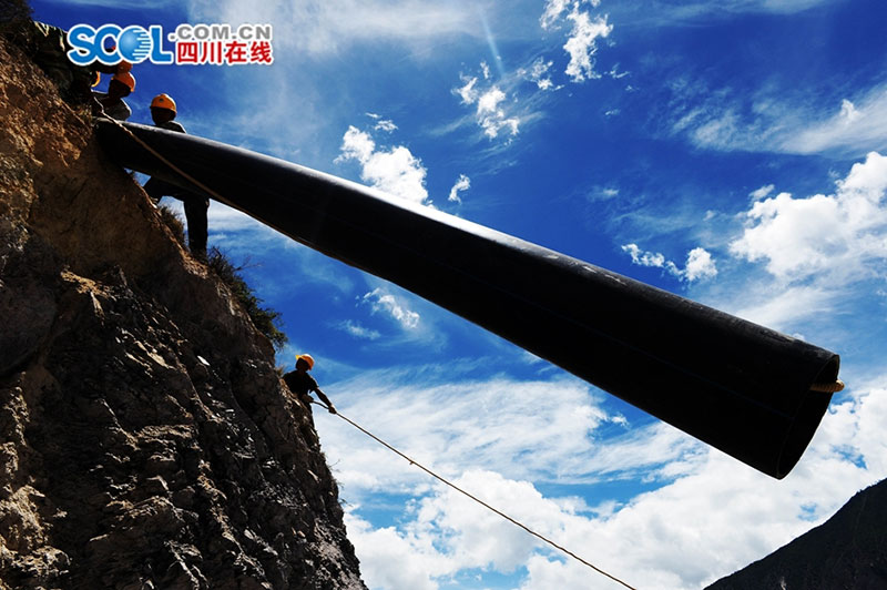 Waterway is being built on the cliffs along the Jinsha River of southwest China's Sichuan province. (Photo/ scol.com.cn)