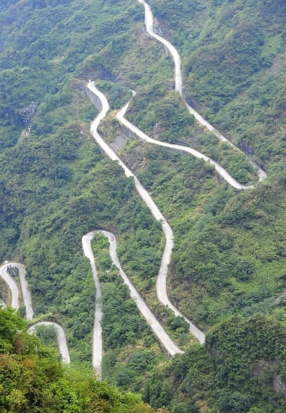 The road on both sides are cliffs, a towering deep valley, and there is a total of 99 bends in 180 degrees trading off and taking turns.