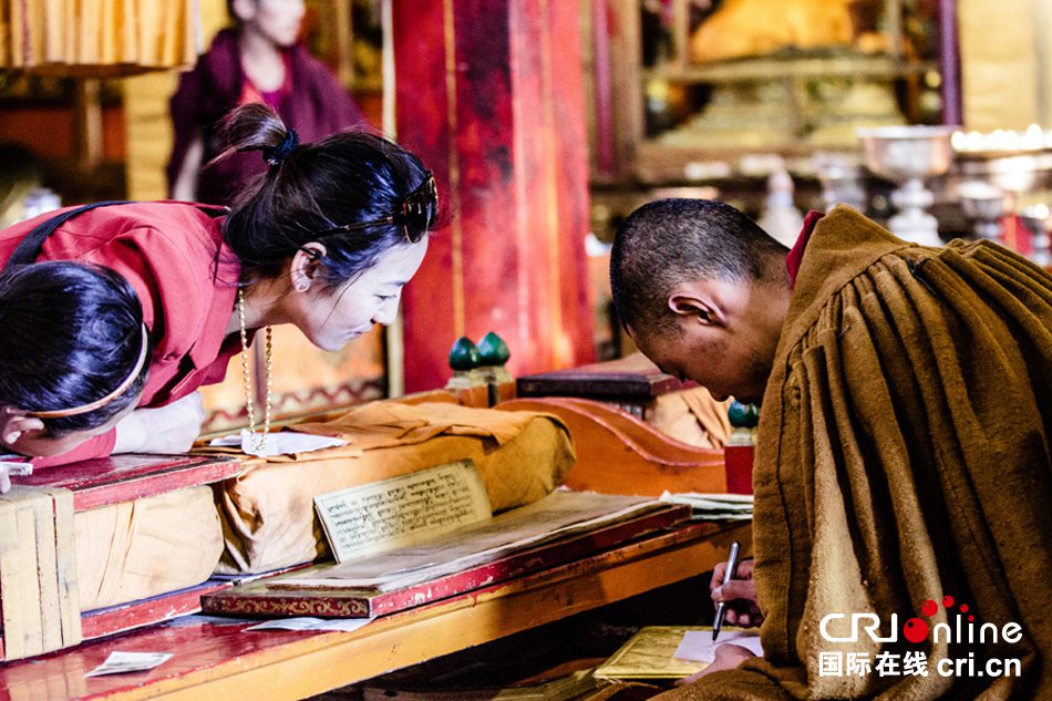A lama prays for pilgrims. (Cri.cn/Cui Chaoqun)