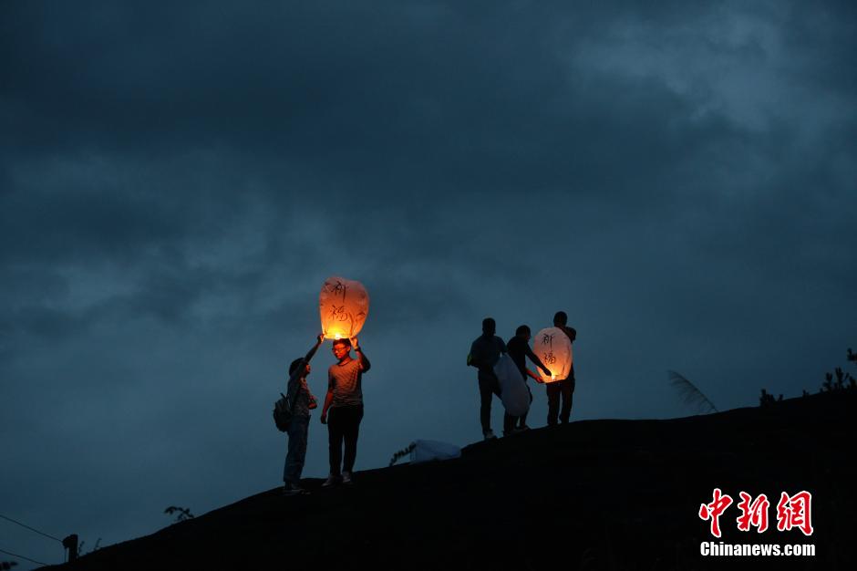 On Aug. 18, people pray for victims of Tianjin blasts as they light up the Kongming lanterns in a square of Yueyang, central China’s Hunan Province. According to Chinese tradition, the seventh day after one's death is an occasion for the relatives of deceased to mourn the passing of their loved ones. (Yang Huafeng / Chinanews)