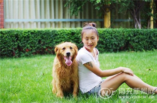| Yue Xiaohong poses for a photo with the dog she trains. (cnncw.cn/ Xu Siqian) |