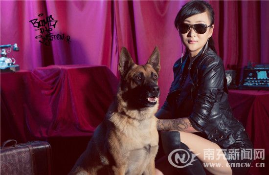 Yue Xiaohong poses for a photo with the dog she trains. (cnncw.cn/ Xu Siqian)