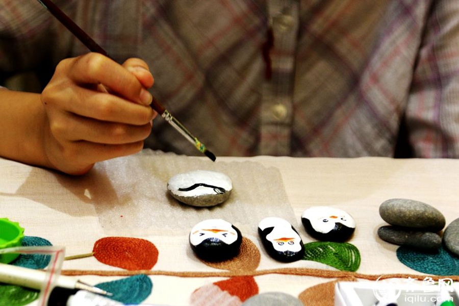 Tutu teaches the kid to draw. (Iqilu.com/Bai Shaoguang)