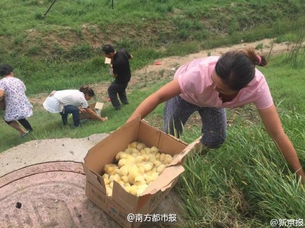 Villagers nearby rushed to the scene to pick up the chicks and bring them home, police couldn't stop them. Some drivers whose car got stuck there also joined the villagers to get free chicks.
