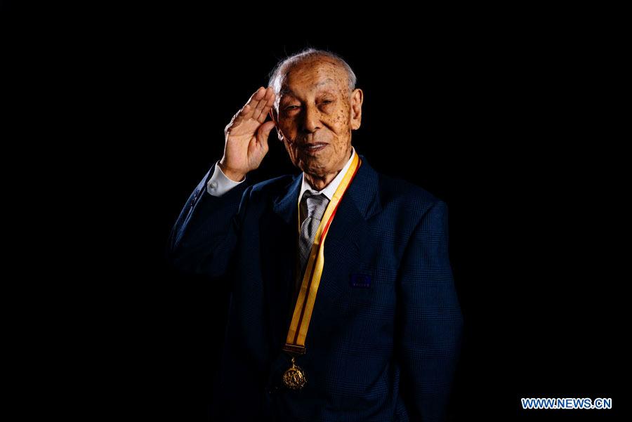 Photo taken on Sept.2, 2015 shows the image of Kobayashi Kancho, in Beijing, capital of China. During the WII, Kobayashi Kancho arrived in China as anenemy soldier but later joined the Eighth Route Army of the National Revolutionary Army under the leadership of the Communist Party of China. Chinese President Xi Jinping on Wednesday granted medals to 10 international anti-fascist fighters who fought for China in World War II. (Xinhua/Liu Jinhai)