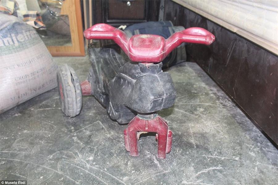 Memories: A broken trike which once belonged to the brothers remains inside the house in Kobane they fled with their family in 2013