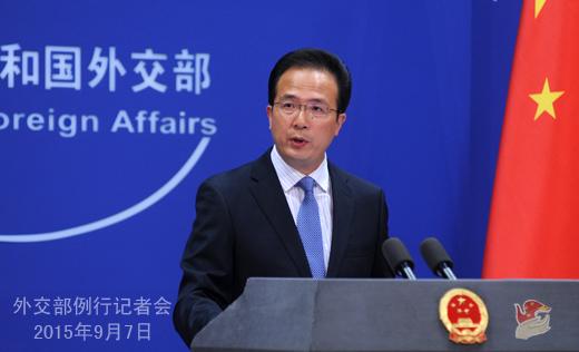 Foreign Ministry Spokesperson Hong Lei holds a regular press conference on September 7, 2015(Photo/Official website of Ministry of Foreign Affairs of China)